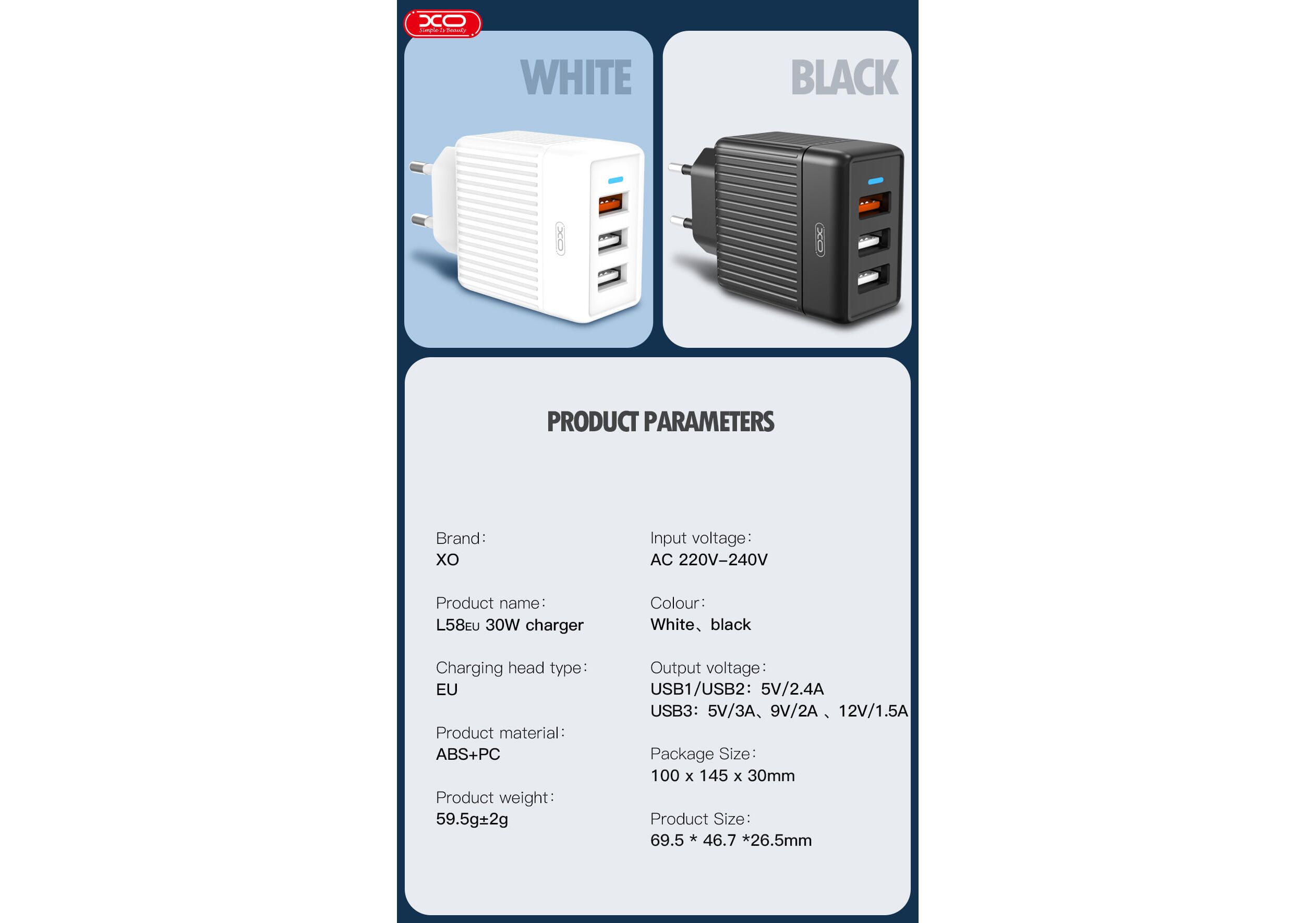 XO Travel PD QC3.0 3 usb